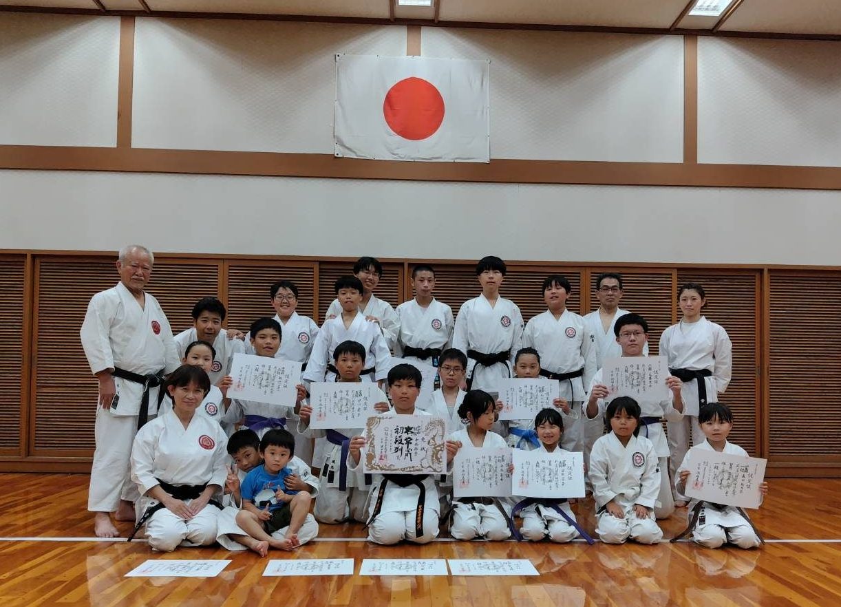 6月度昇段級審査合格者への認定証の授与と初段位合格の中西佑季くんへの黒帯授与式を行いました。